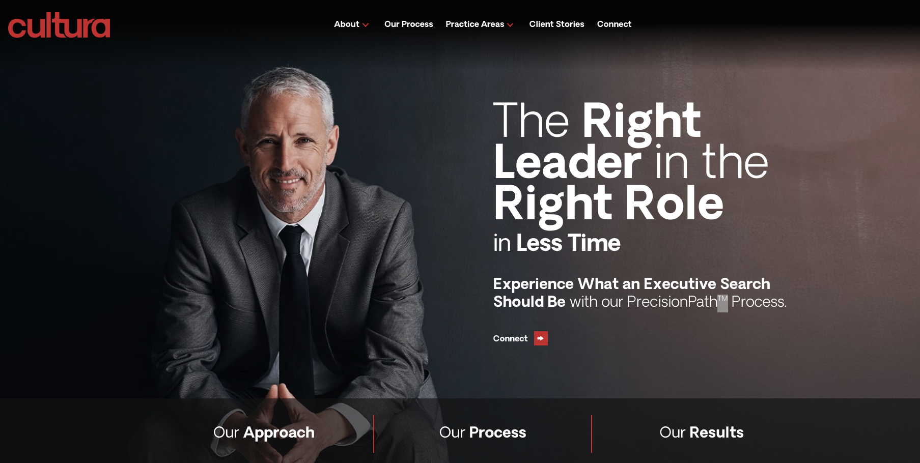 Cultura is a Top 15 Twin Cities based fully retained executive search firm (MSPBJ Book of Lists) that executes search work all over the US. The firm was founded in 2016 by Brian Peterson, who, after spending years in the search space both in large enterprise settings and boutique retained settings, saw a consistent and clear gap in the search industry as it became more and more transactional in nature. Brian envisioned a search firm which focused less on client or search volume, and rather, committed more time, energy, and resources to search execution, delivery excellence, and more meaningful outcomes on behalf of its clients. Cultura did just that, having developed an extremely comprehensive proprietary search execution methodology (PrecisionPath™) along with several key proprietary digital platforms to support search execution success. This foundational principle remains the driving force behind Cultura's continued growth, yielding unparalleled success metrics including a 100% search completion ratio, 90%+ placement retention rate, 56% diversity placement rate, and a 94% candidate experience rating of 5/5 stars.